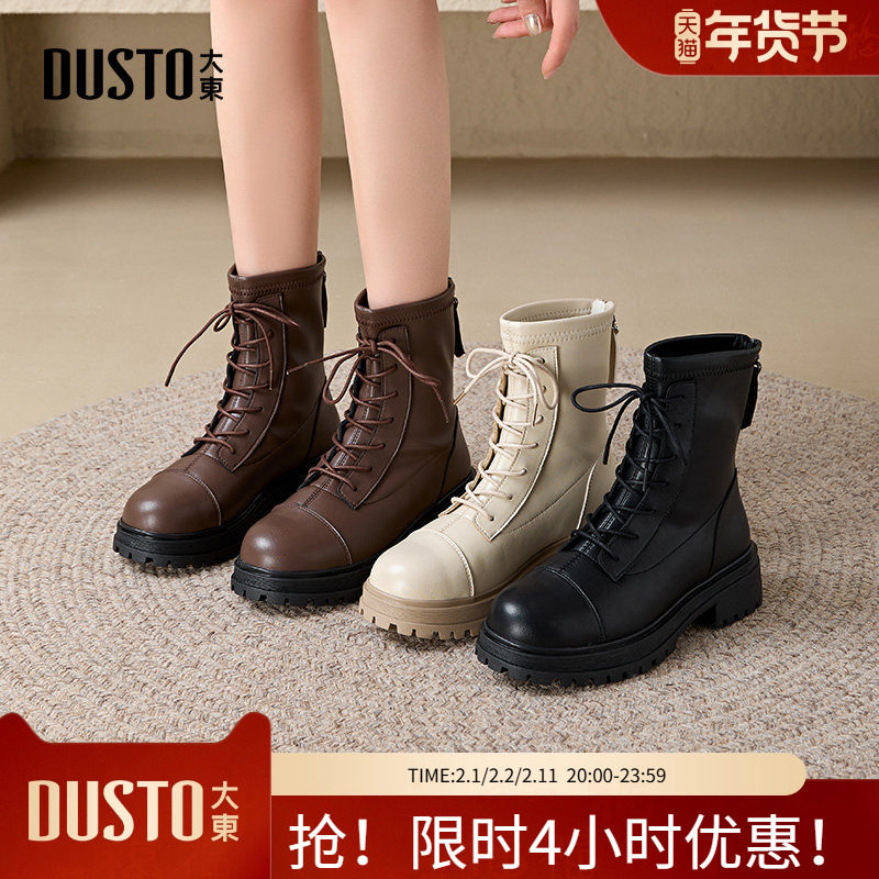 大东马丁靴女鞋2025冬季新款时尚休闲粗跟侧拉链中跟圆头D0004