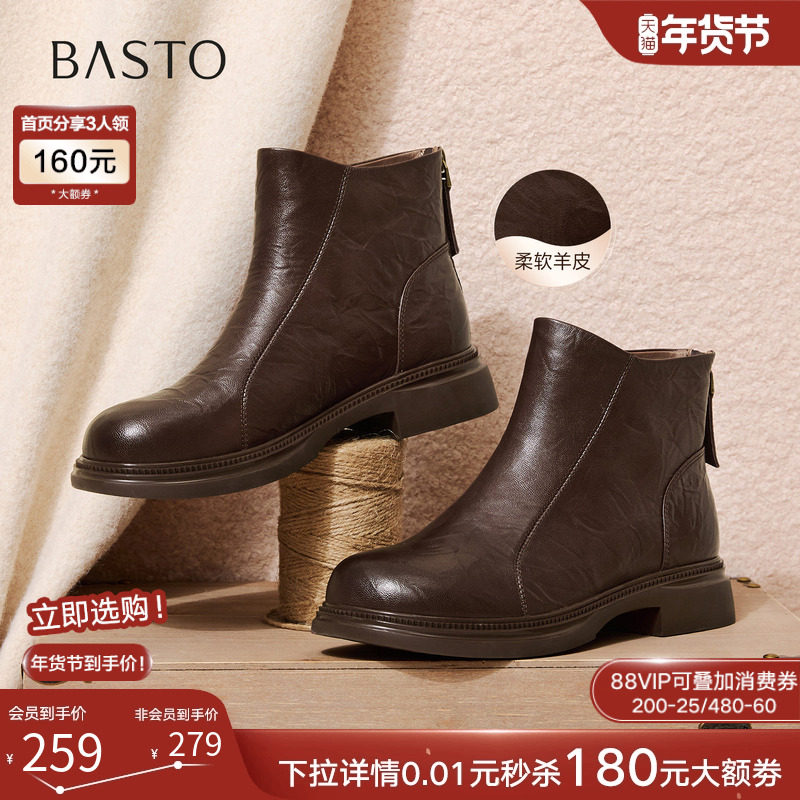 百思图2025冬季商场新款圆头羊皮靴通勤粗跟女短靴马丁靴S3055DD5
