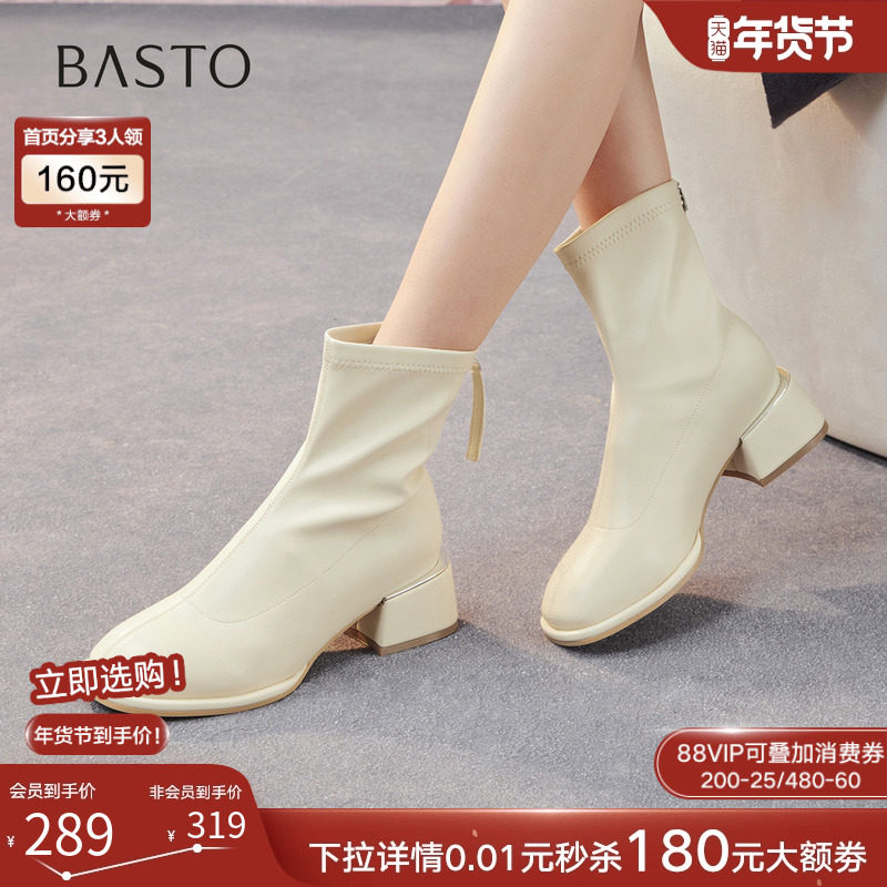 百思图2025冬季商场新款白色法式小踝靴粗跟女短靴马丁靴E5610DZ5