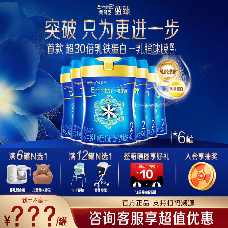 美赞臣蓝臻2段820g*6较大婴幼儿配方奶粉乳铁蛋白官方旗舰店同品