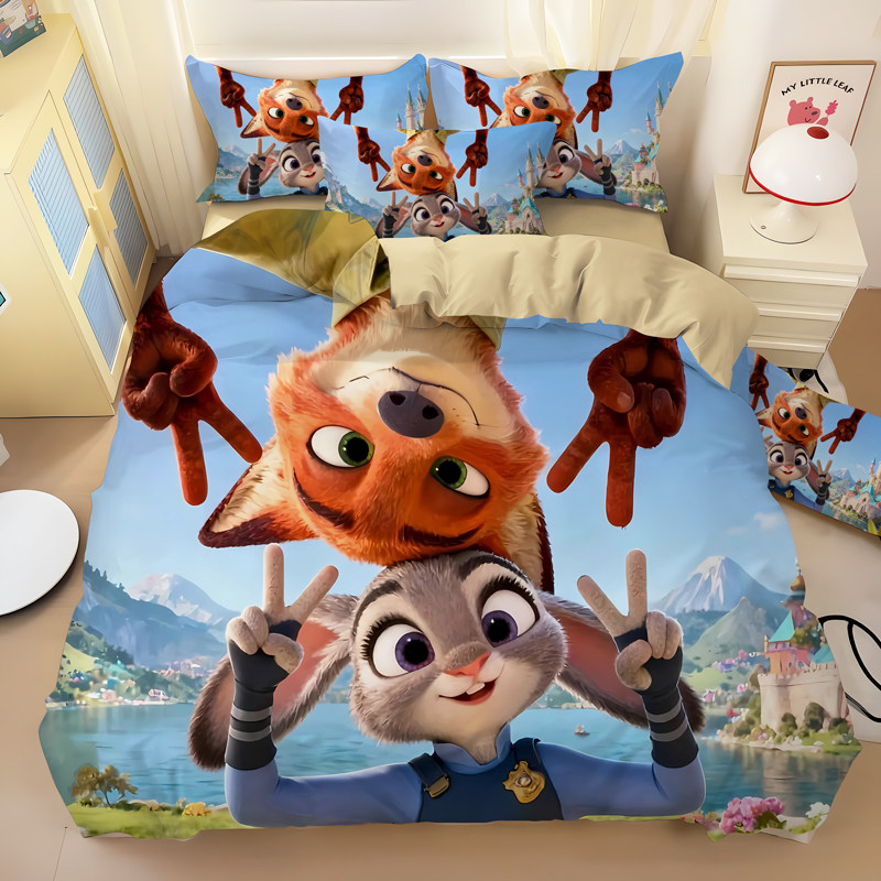 疯狂动物城尼克朱迪卡通纯棉可爱四件套动漫儿童学生床上用品床单