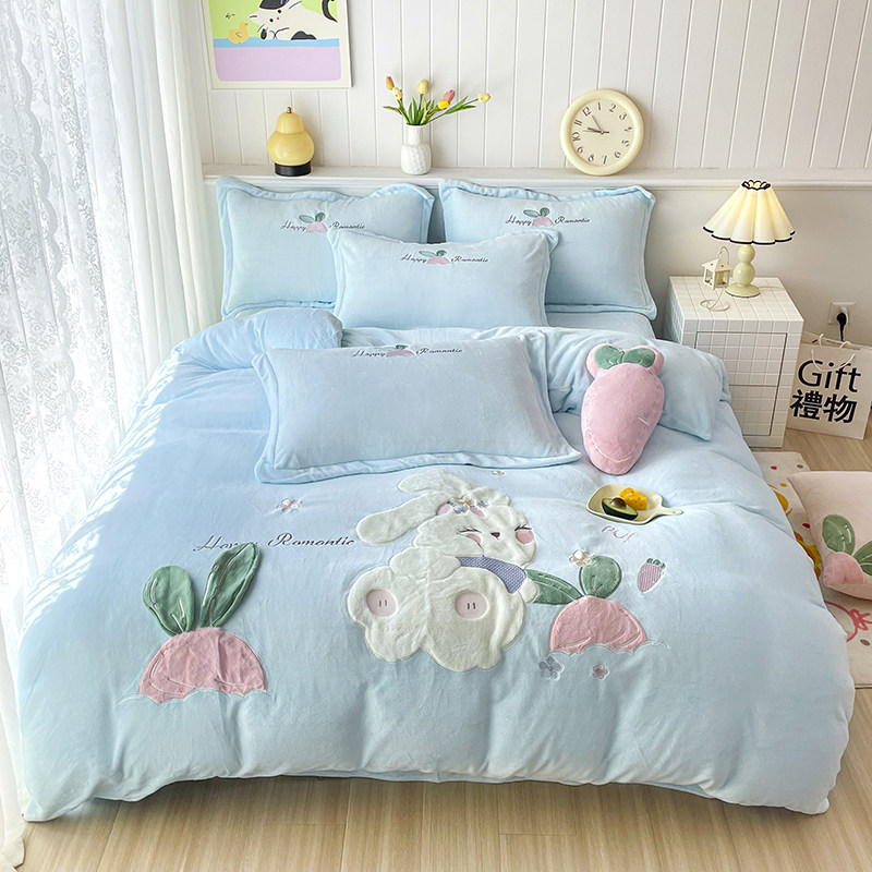 2025新款高克重加厚牛奶绒四件套兔毛绒贴布绣花保暖学生床上用品