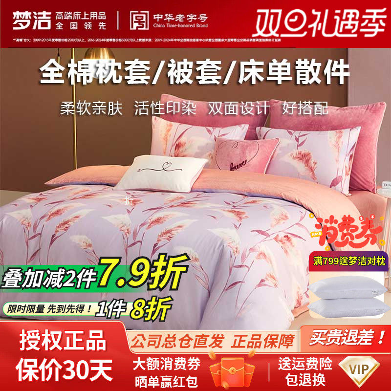 梦洁纯棉全棉被套单件床单床笠枕套散件拆零学生床上用品林间照影