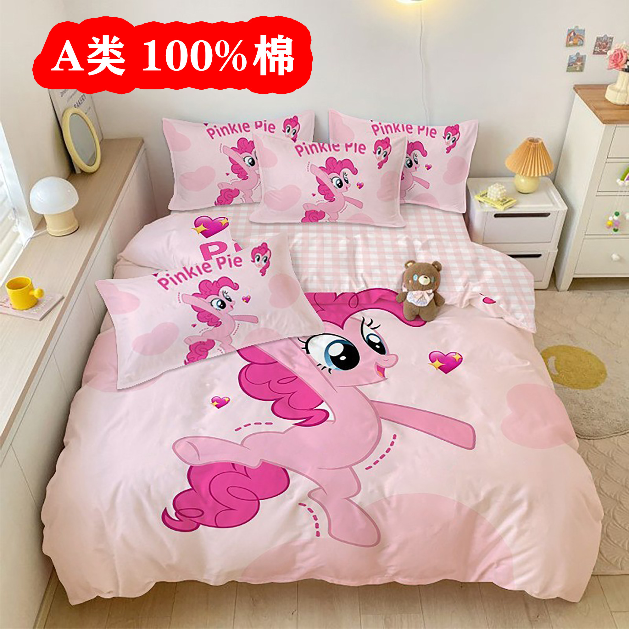 A类小马宝莉纯棉四件套100%全棉幼儿园学生床上用品3件套碧琪紫悦
