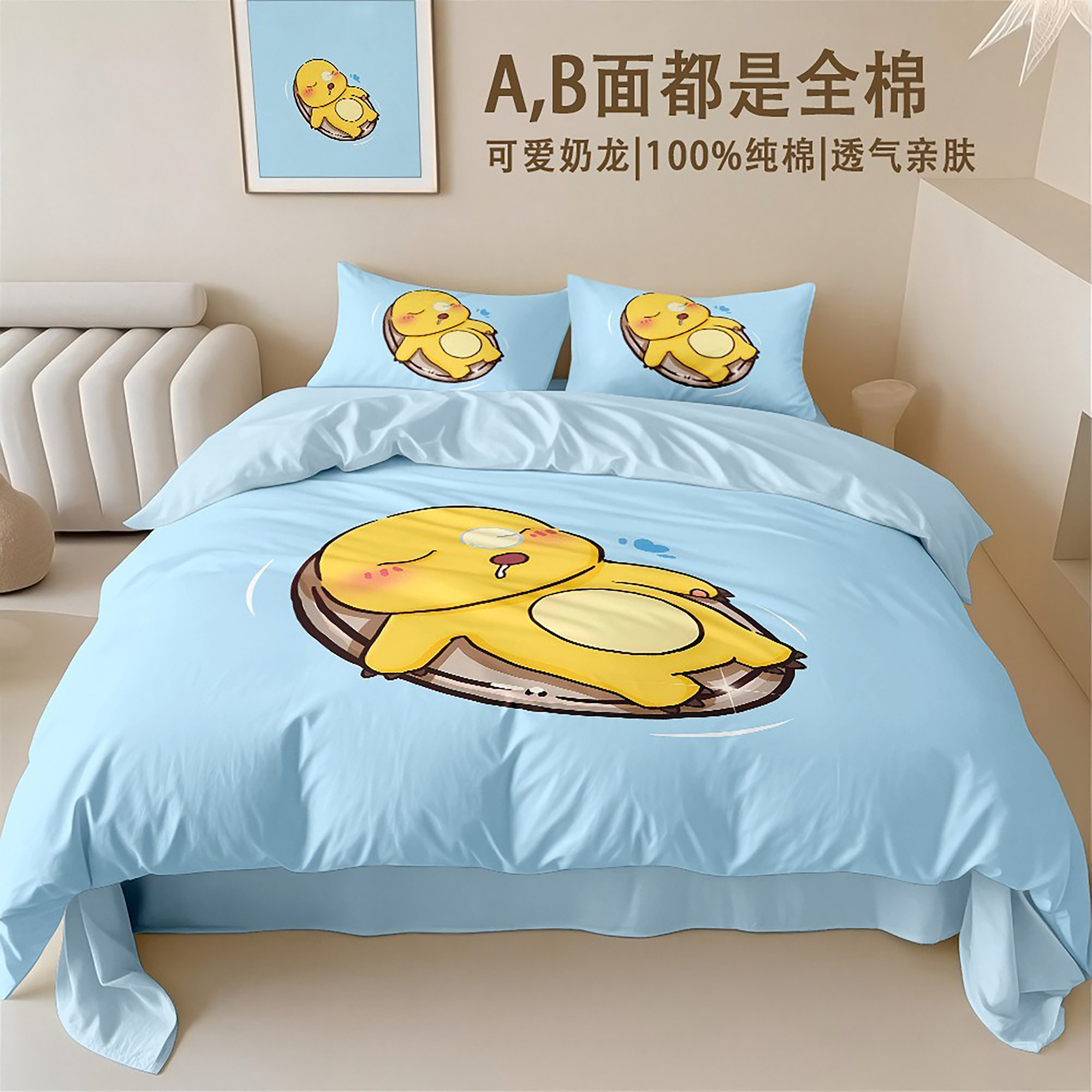 卡通小七奶龙被套纯棉四件套100%全棉可爱儿童学生床上用品三件套