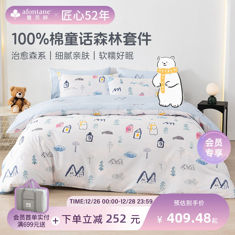 富安娜家纺新品上新纯棉儿童A类床上四件套床单被套学生床上用品