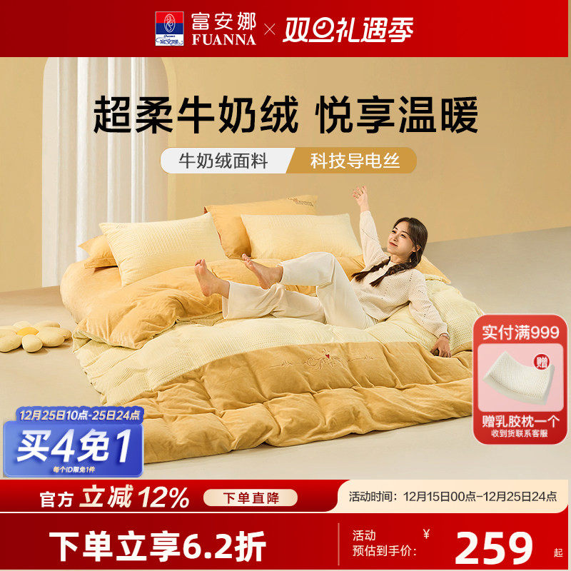 富安娜牛奶绒床单四件套冬季加厚保暖法兰绒套件被套学生床上用品