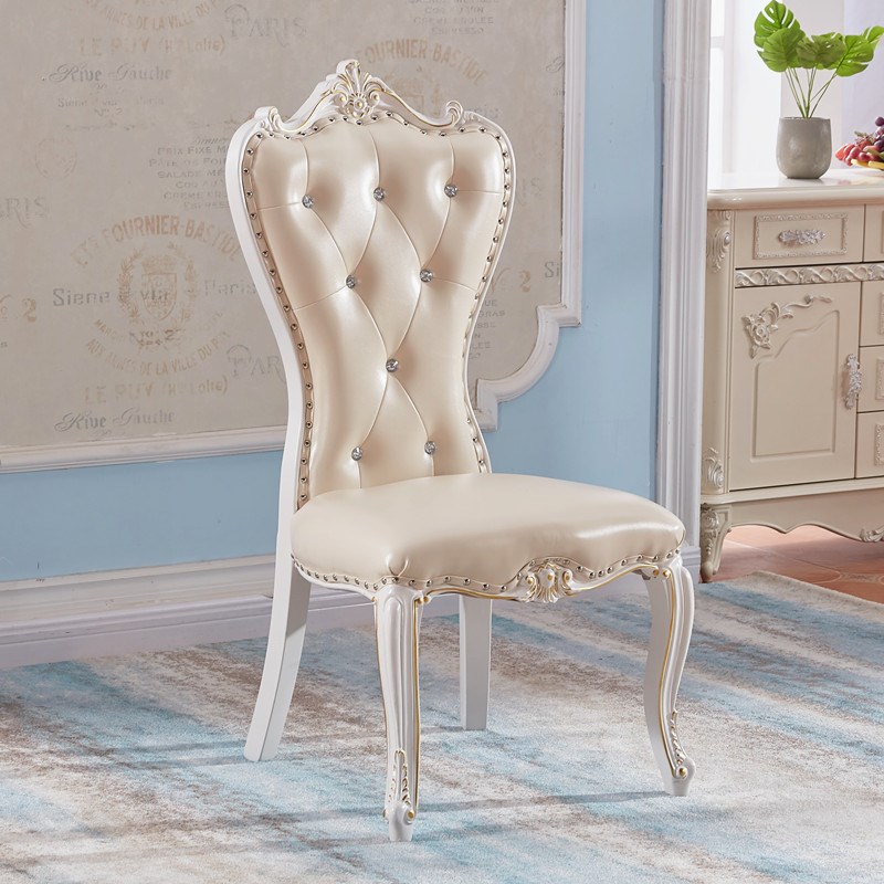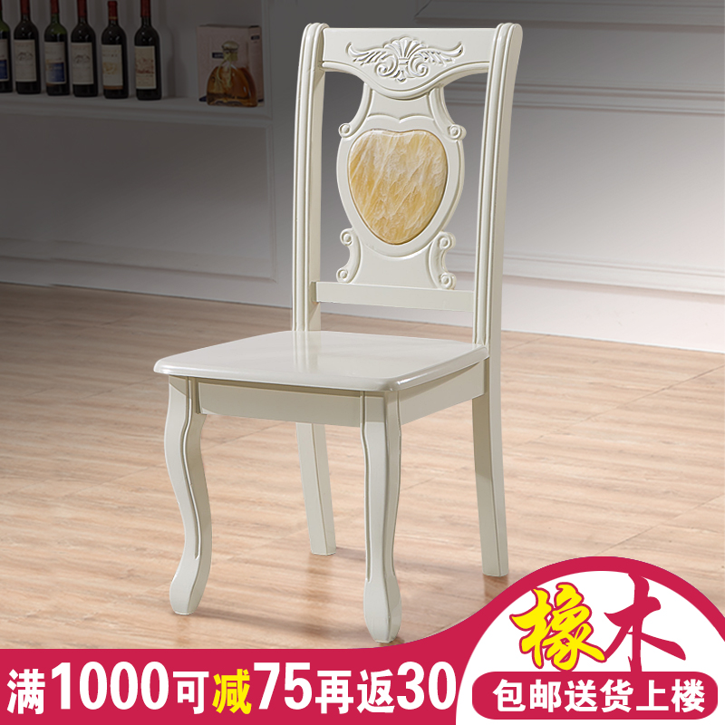 欧式椅子靠背凳家用中式橡木雕花餐桌椅现代简约餐厅白色实木餐椅