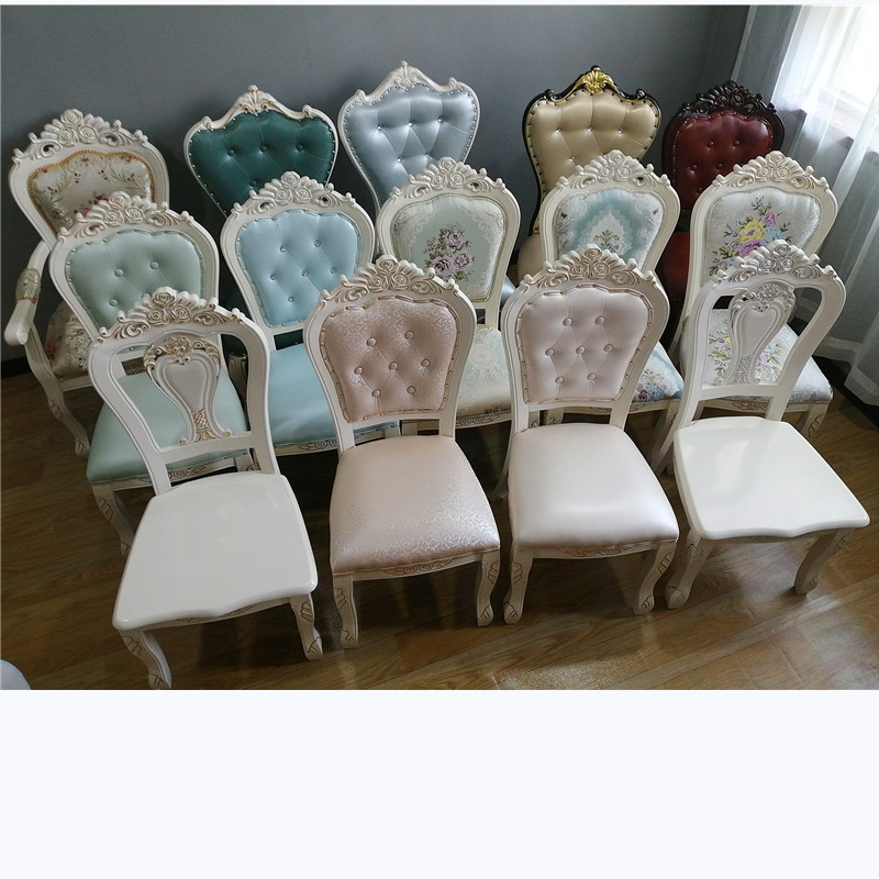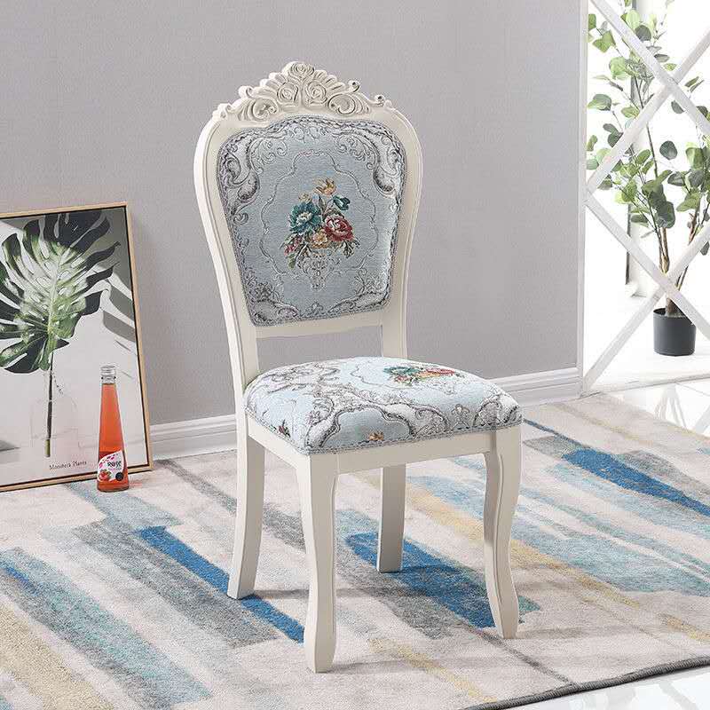 欧式餐椅田园实木布艺酒店梳妆书桌美甲靠背凳子舒适家用餐厅椅子
