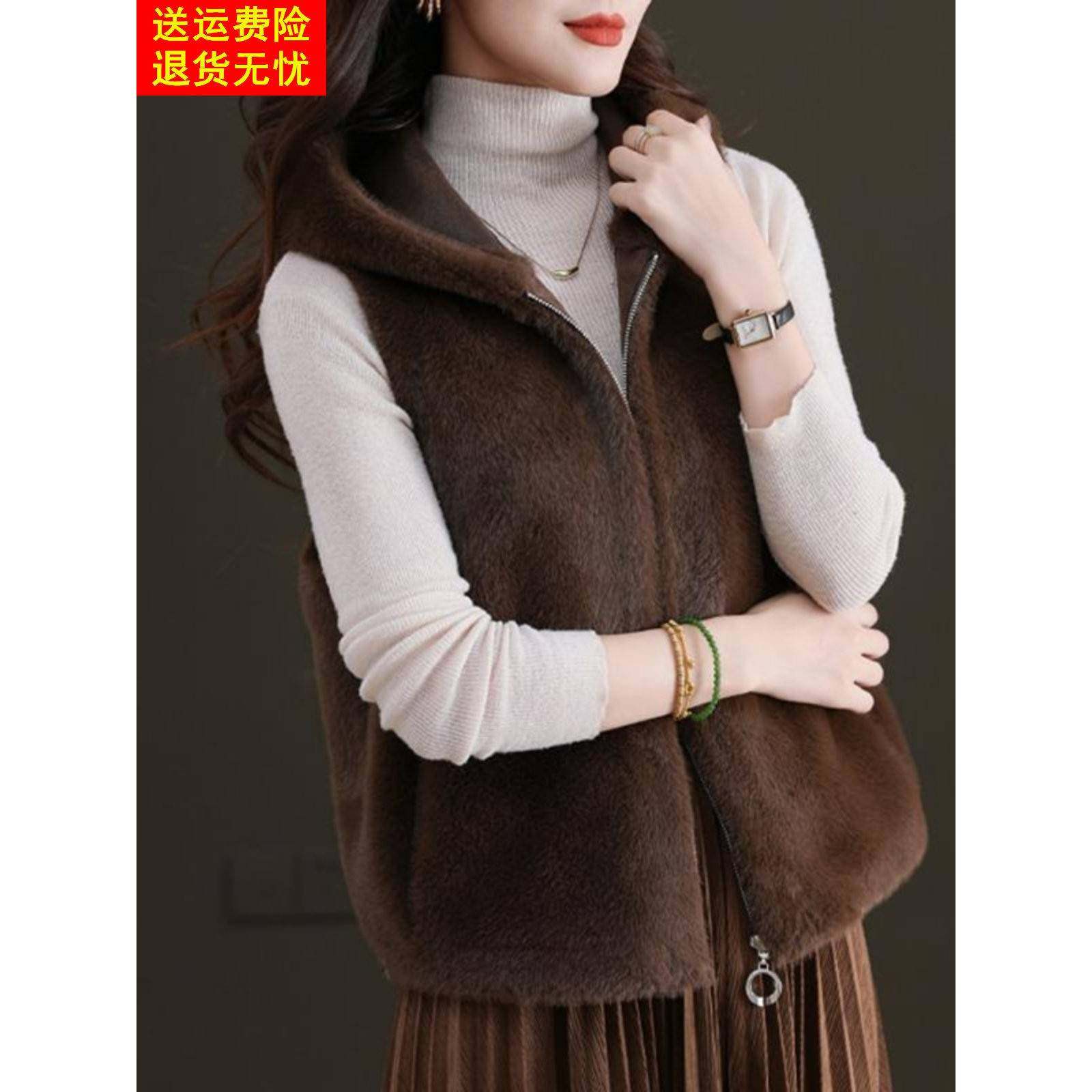 短款皮草外套女秋冬季连帽马甲上衣加厚皮毛一体坎肩水貂绒背心女
