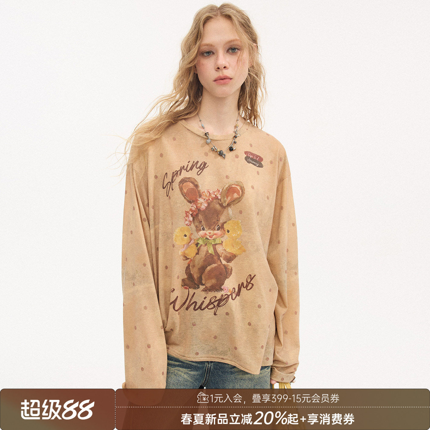 DIDDIMODA 薄款罩衫小兔印花长袖T恤女宽松上衣/小象T恤/卫裙