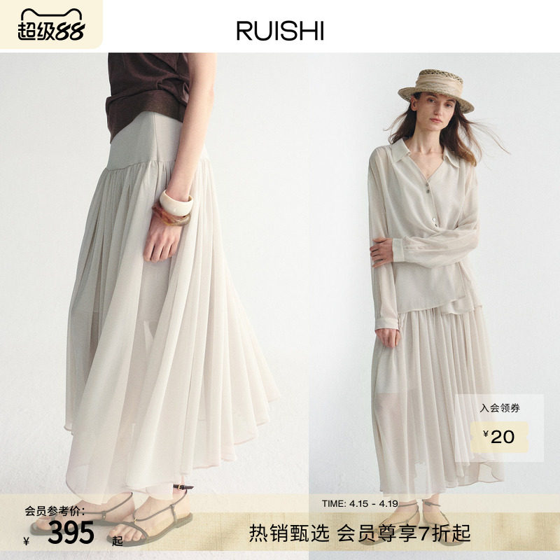 RUISHI芮时“垂影诗人”竖条肌理翻领长袖衬衫不规则飘逸半裙套装