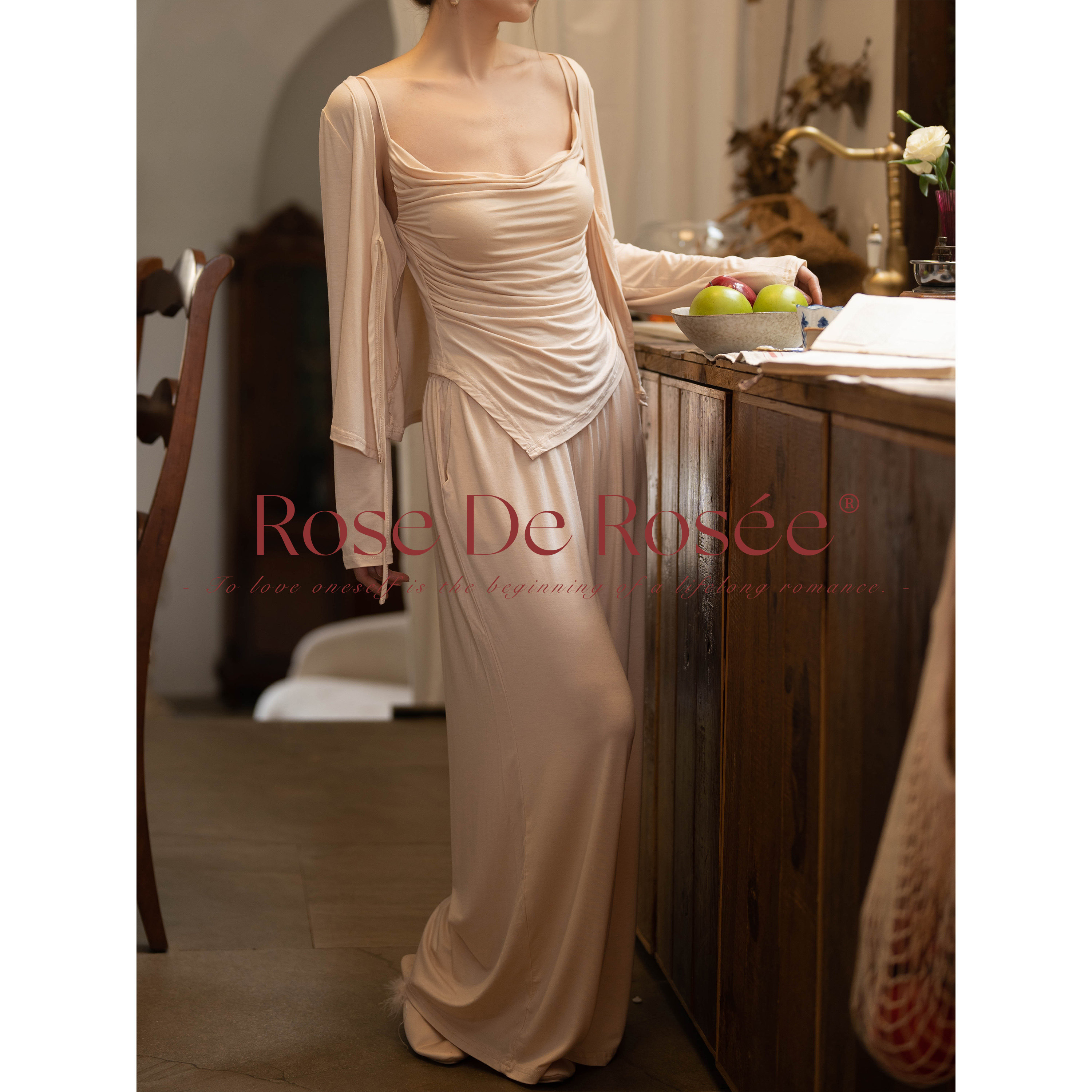 Roserosee秋屿2026新款长袖睡衣女外穿家居服高级感独特绝美睡裙