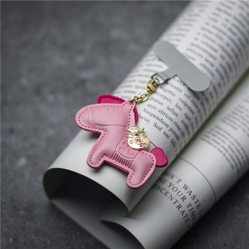 真皮小马情侣车钥匙挂件女男汽车钥匙扣挂饰精致礼物马上有钱刻字