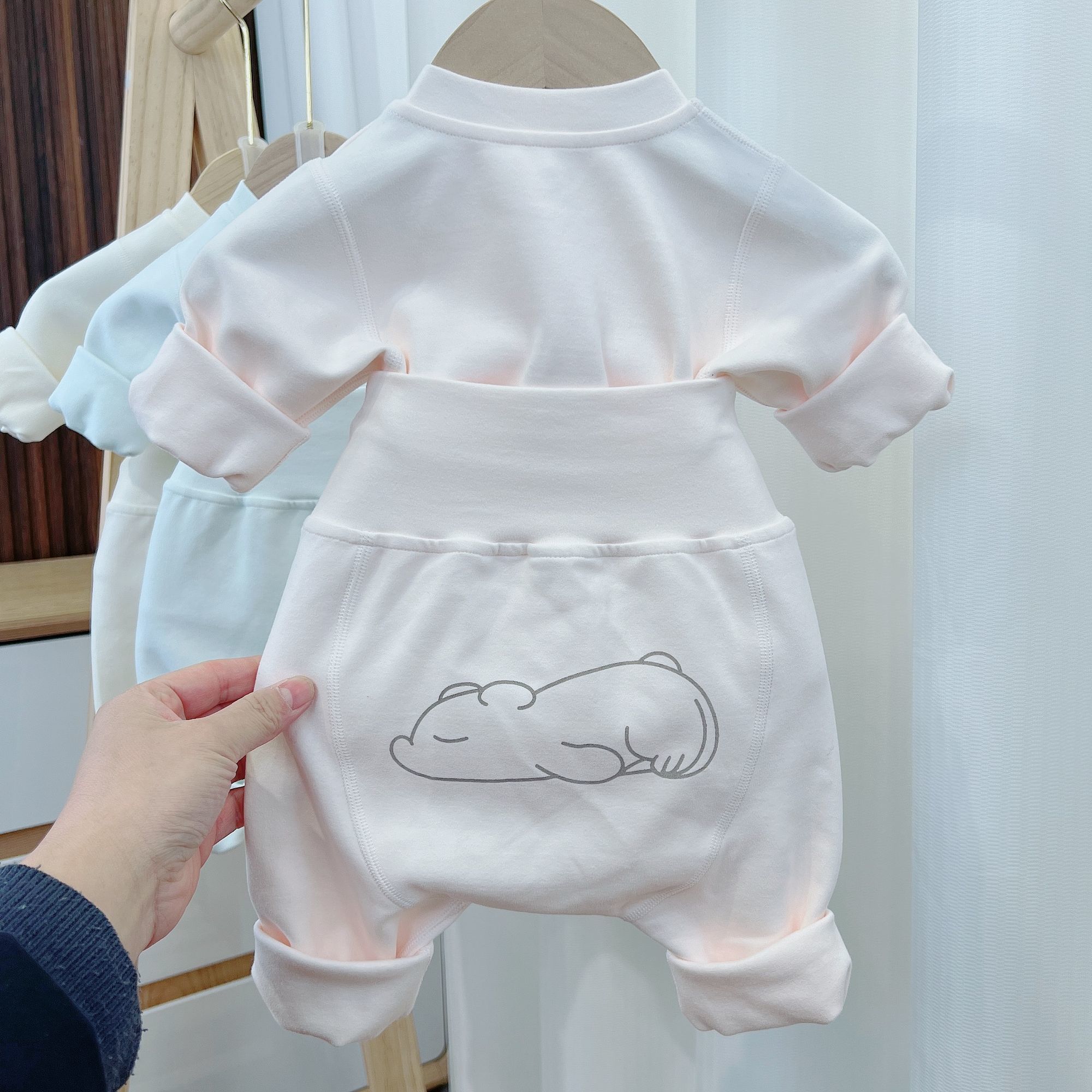 春款婴儿高腰屁屁裤款秋衣33007宝宝舒绒棉透气吸湿护肚秋衣套装