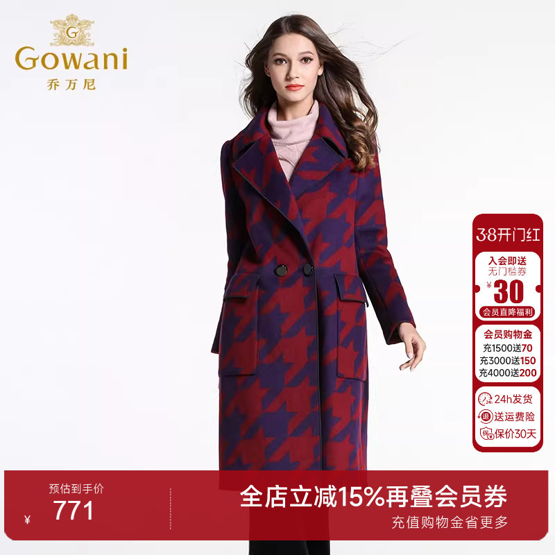 乔万尼清仓冬季羊毛呢子大衣女时尚气质双面呢修身中长款毛呢外套