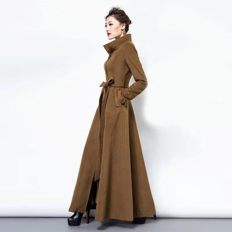- 加长款呢子大衣女