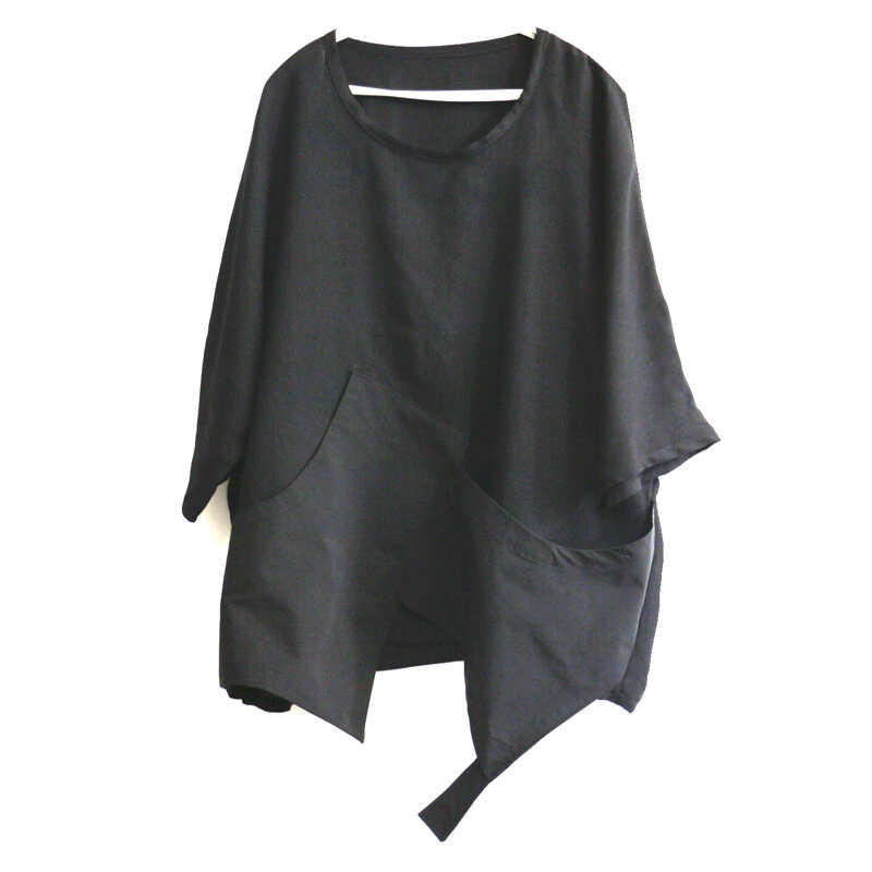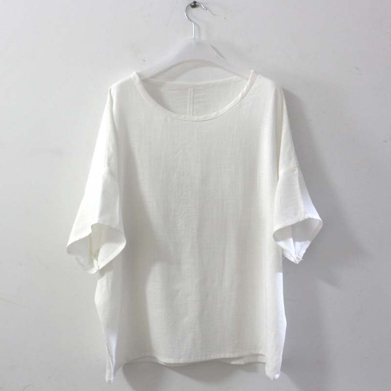 大码潮男棉麻料短袖宽松蝙蝠衫立体袖中袖T恤衫夏季新款小众上衣