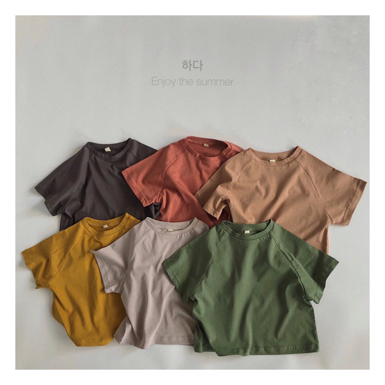 韩版基础短袖T恤夏季儿童纯色蝙蝠袖T恤衫男女童圆领打底衫洋气