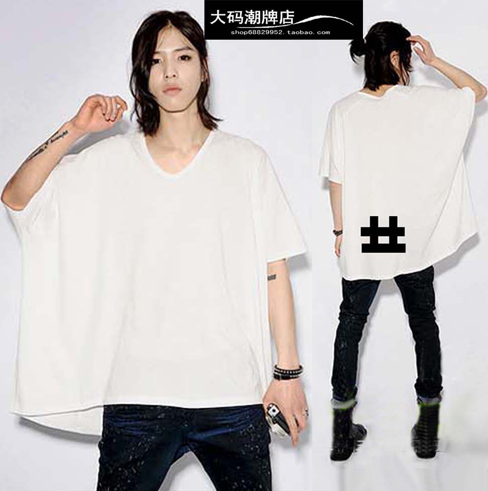 夏季男潮牌圆领短袖T恤蝙蝠衫宽松潮流不规则开叉下摆发型师t恤男