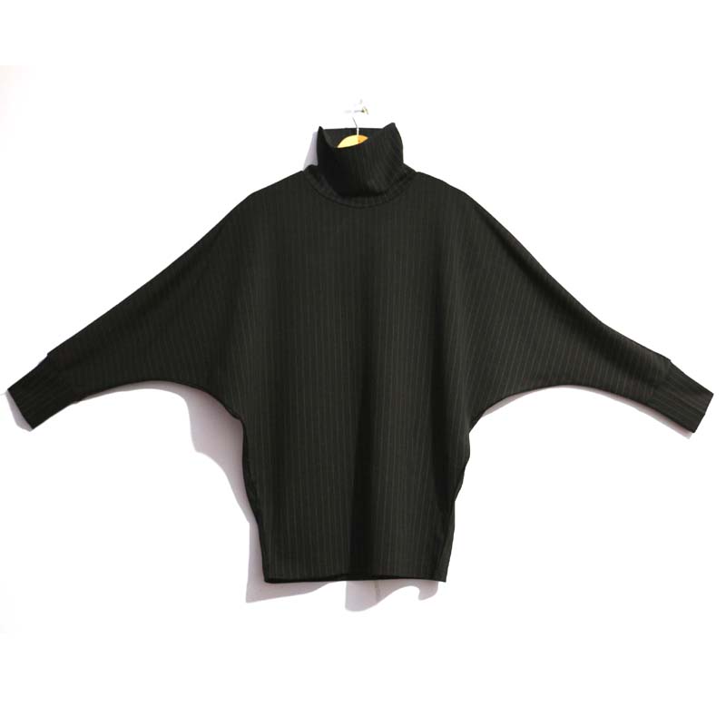 男士高领长袖打底衫内搭条纹t恤宽松蝙蝠衫大码潮牌宽松秋衣潮ins
