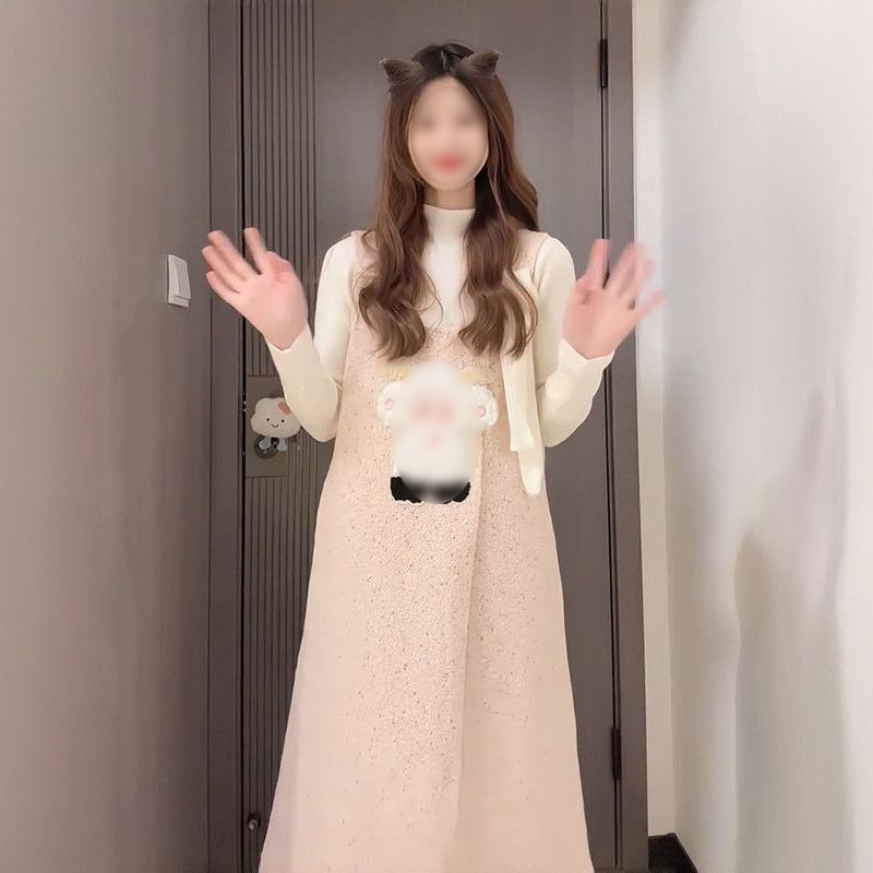 孕妇连衣裙套装春秋冬2025新款波点刺绣背带裙打底衫针织两件套女