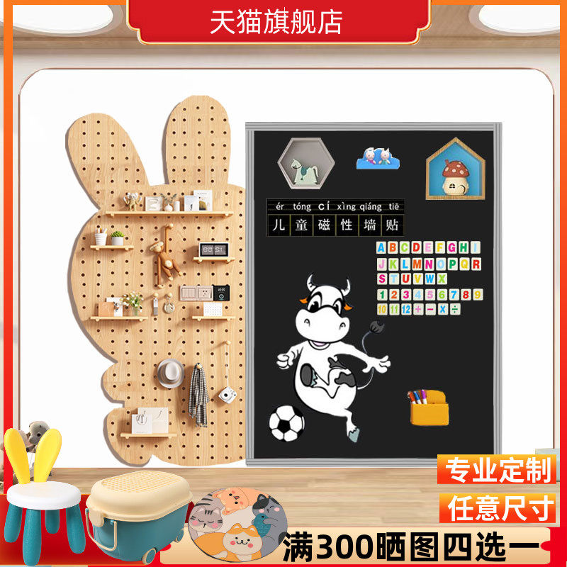实木洞洞板置物架儿童黑板白板二合一墙上壁挂式收纳板墙面涂鸦板