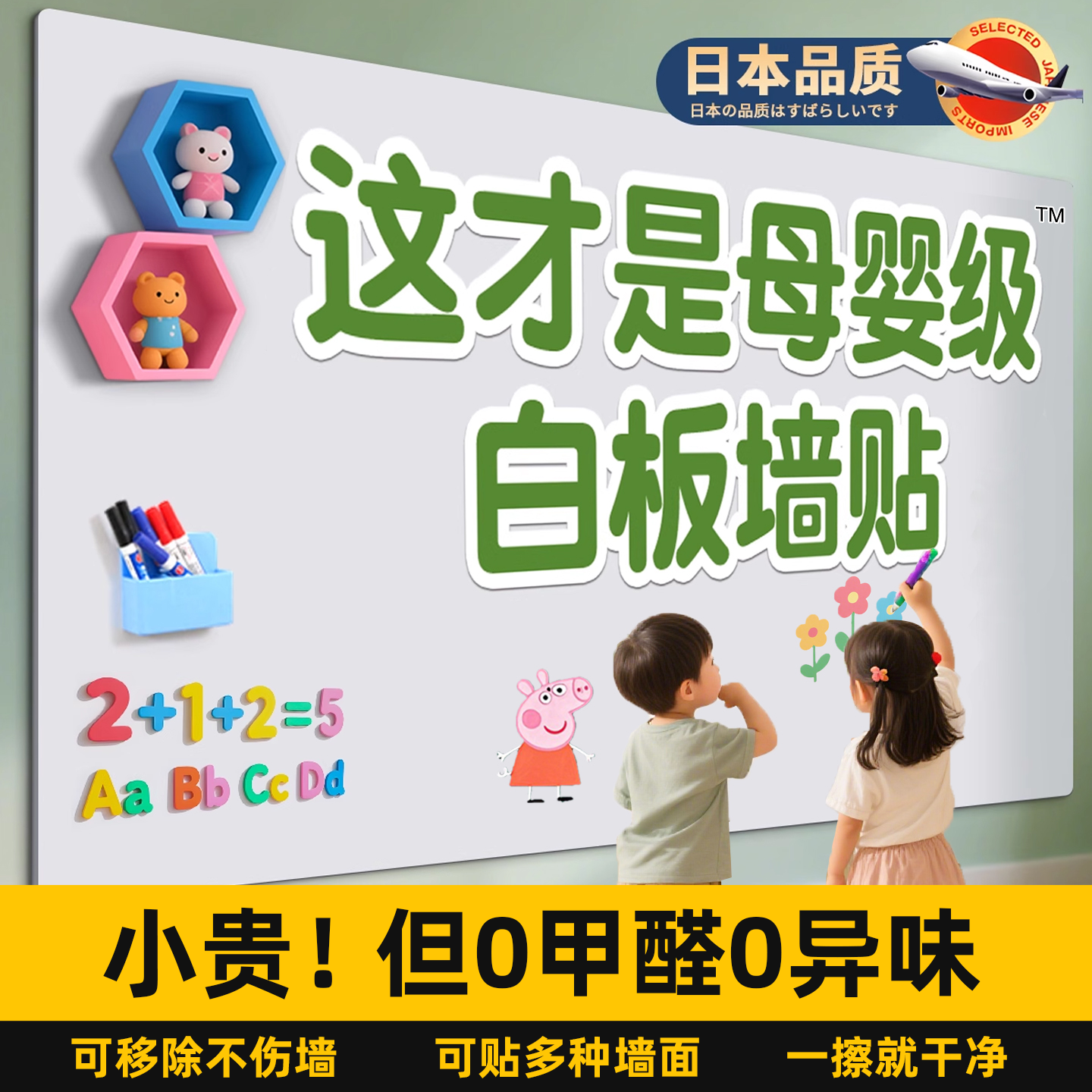 日本品质磁吸白板墙面墙贴家用教学可擦写字板可移除不伤墙儿童黑板平替磁力贴磁性背景板涂鸦绘画书写板定制