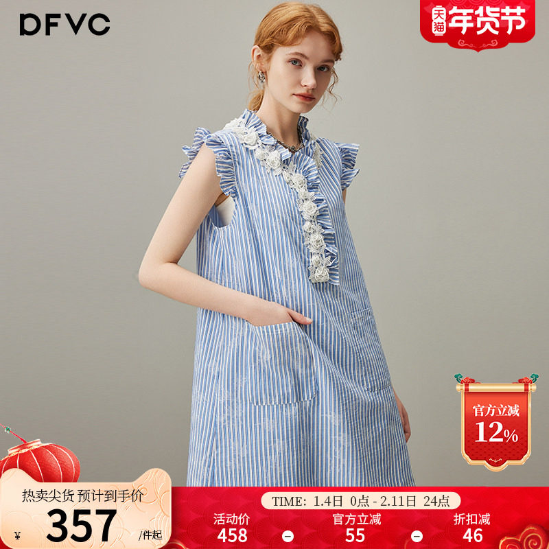 dfvc甜美蓝色条纹衬衫裙女2025年夏季新款小个子无袖连衣裙背心裙