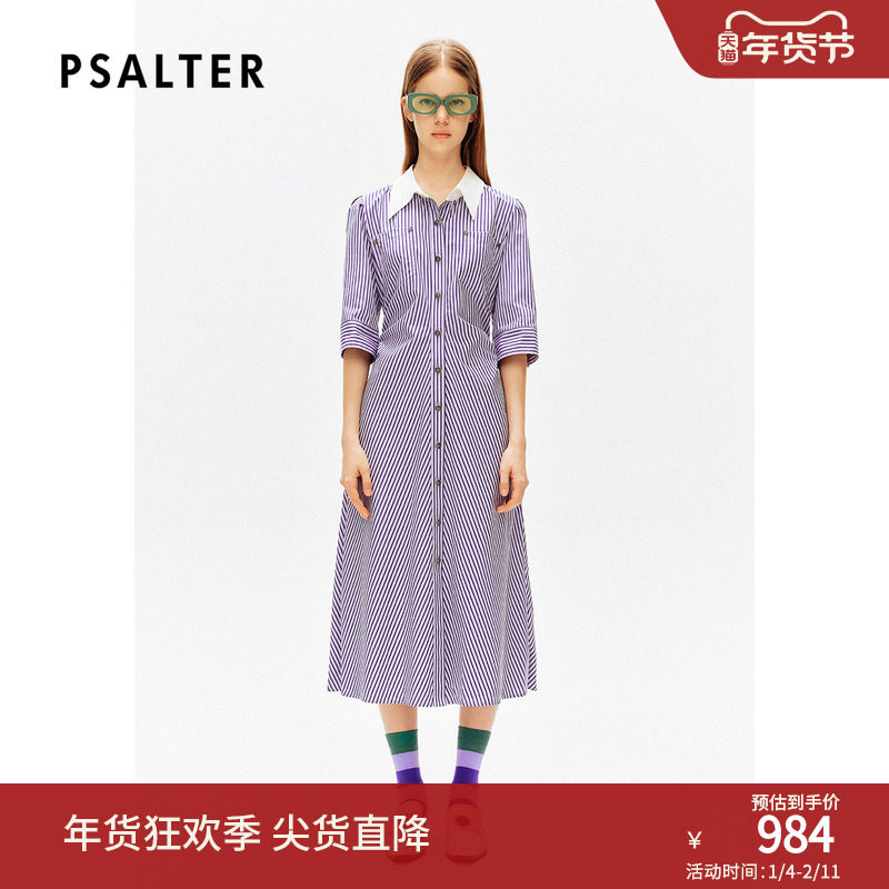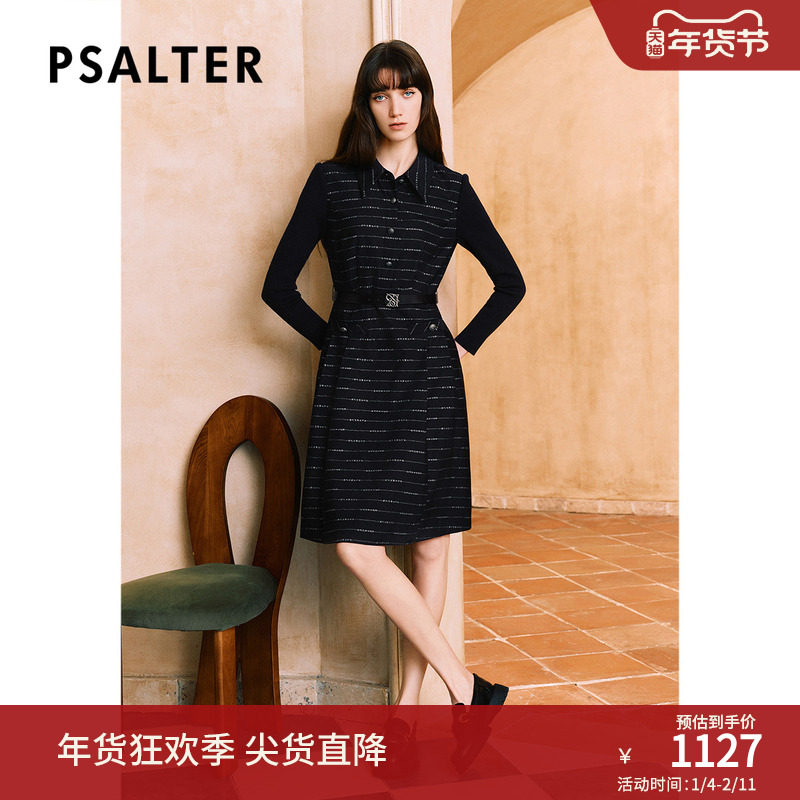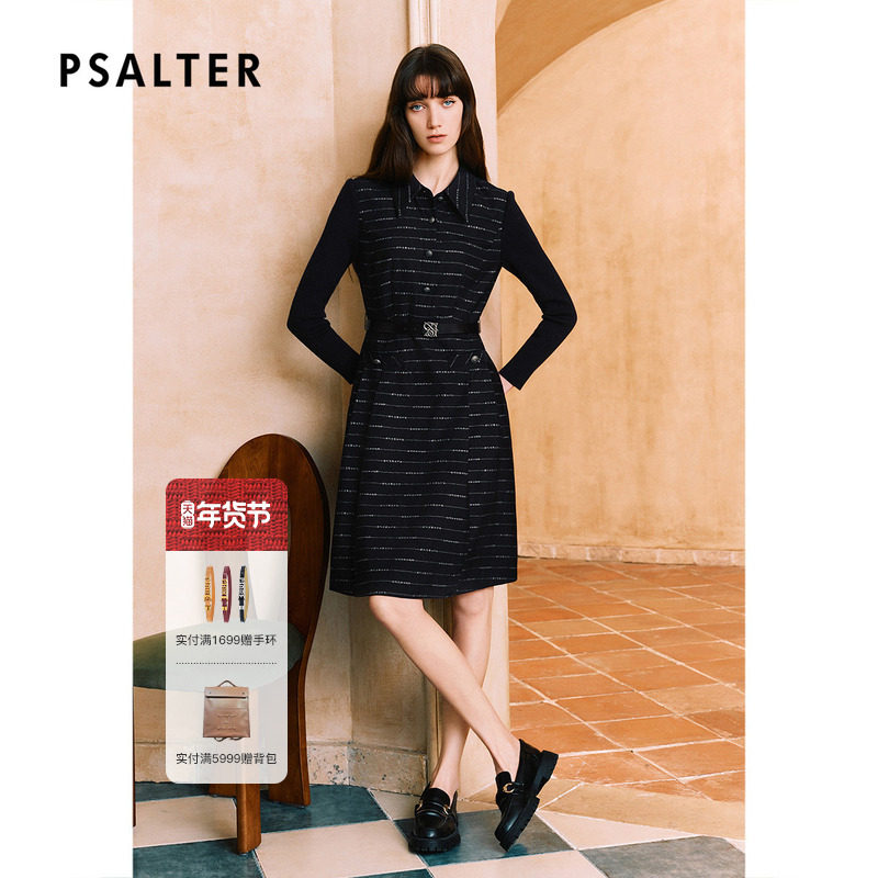 PSALTER诗篇羊毛拼接袖学院风翻领条纹衬衫裙连衣裙冬季款