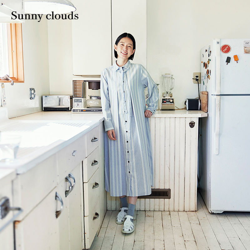 桑妮库拉/Sunny clouds 女式纯棉条纹衬衫裙舒适连衣裙