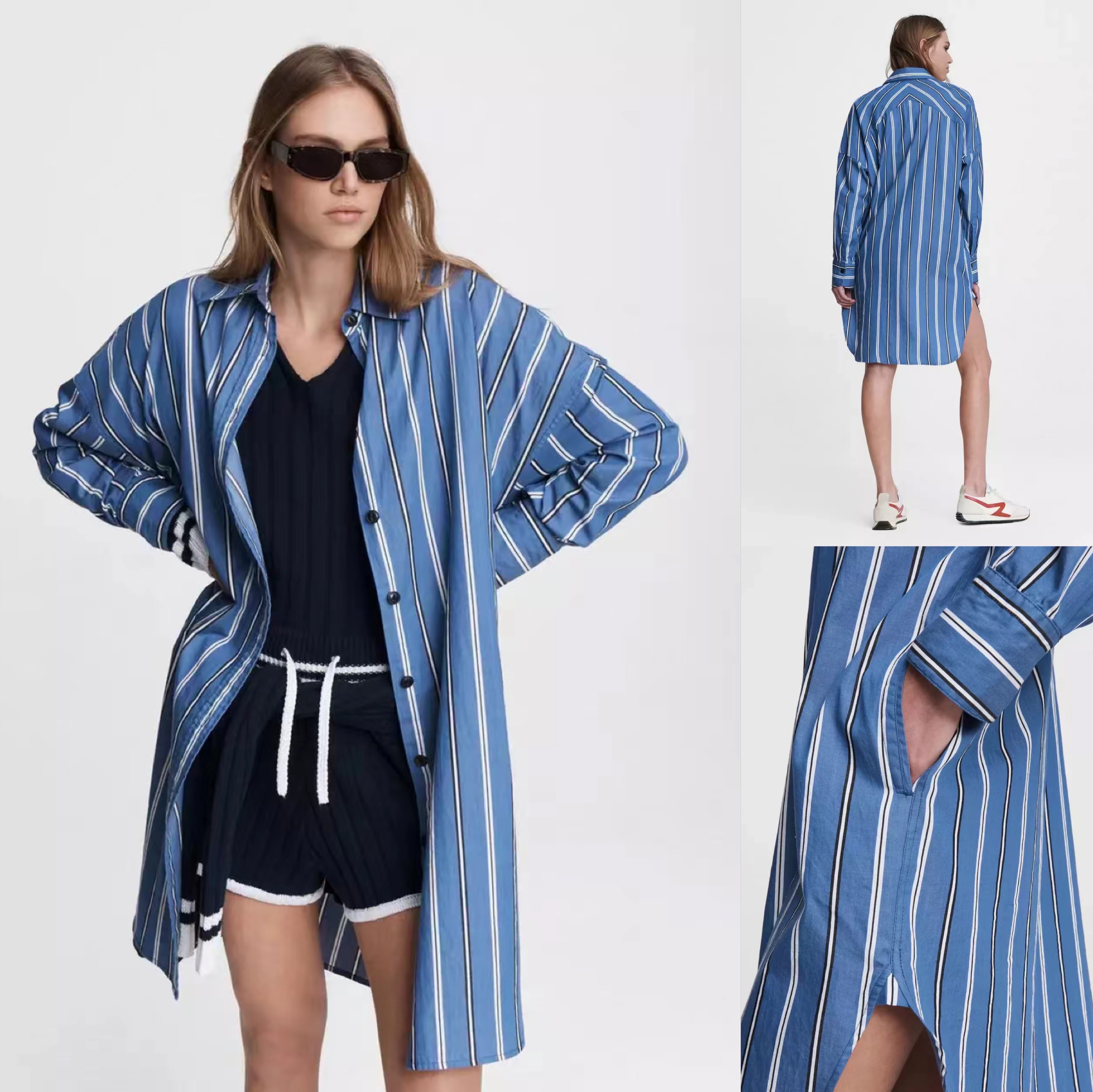 女款纽约轻奢R&B Sandrashirtdress条纹衬衫裙 公价405$