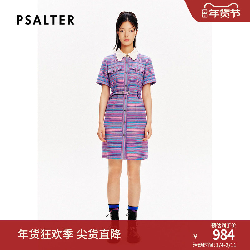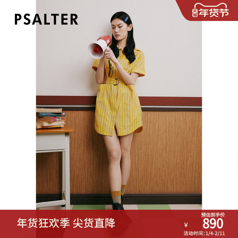 【100%纯棉】PSALTER诗篇翻领收腰五分袖条纹衬衫裙连衣裙夏