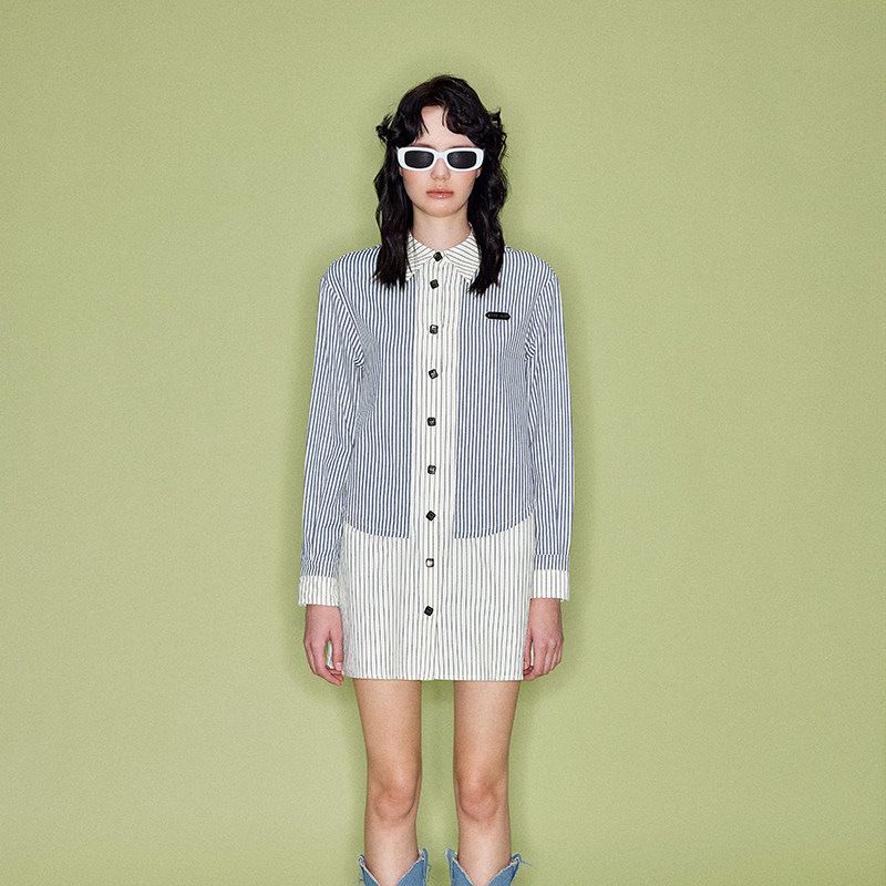 SHRO ENRO runway like breathe系列 女士假两件条纹衬衫裙301469