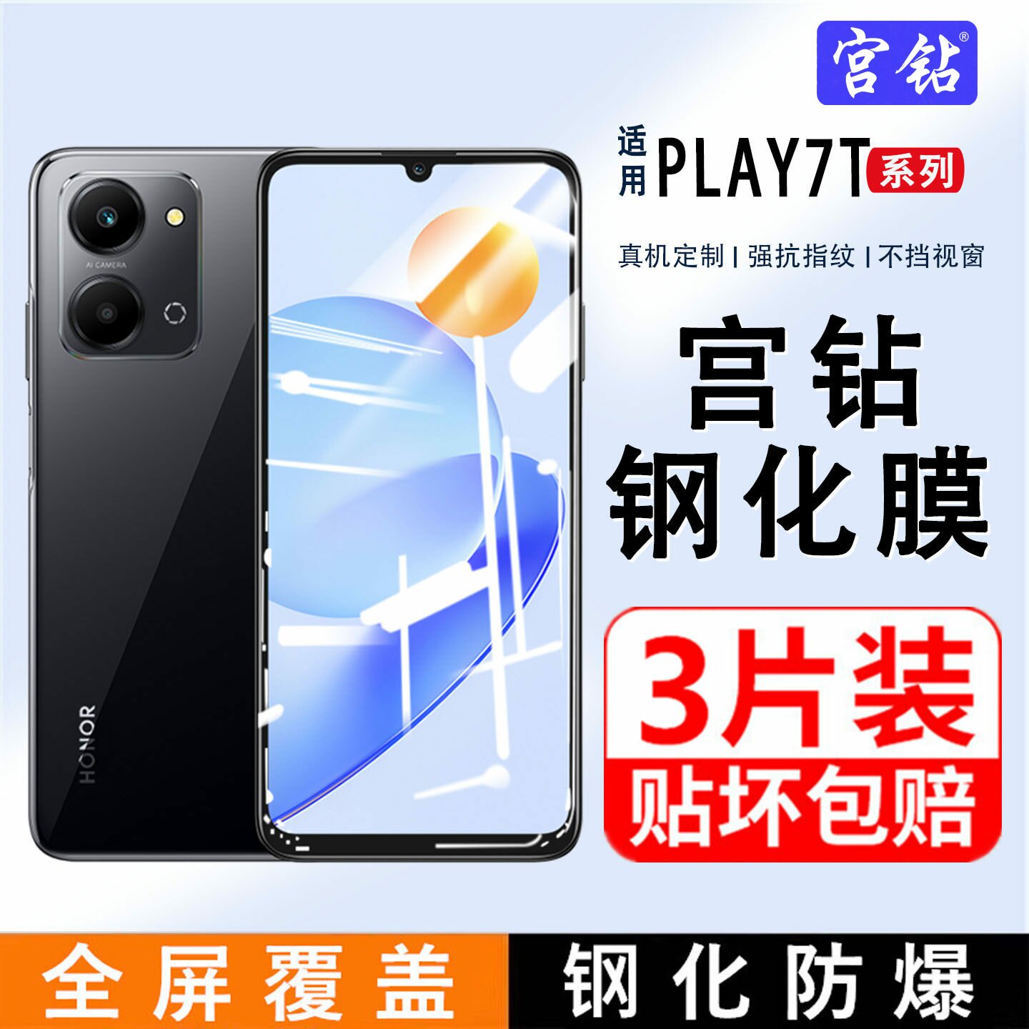 适用荣耀Play7T钢化膜play6T全屏paly6C无白边PLAY7TPro贴膜防爆防指纹huawei全包边6tpor手机膜抗蓝光保护膜