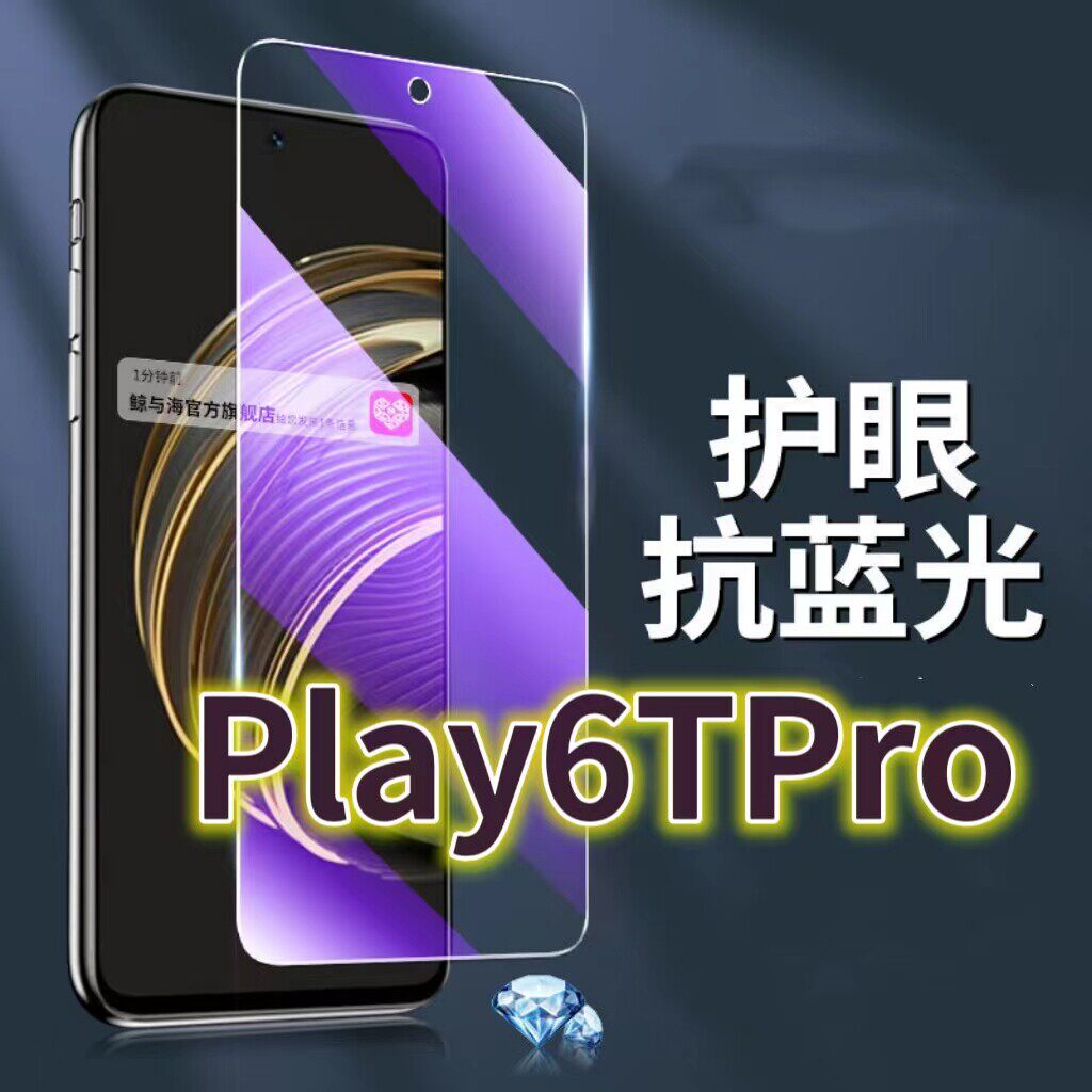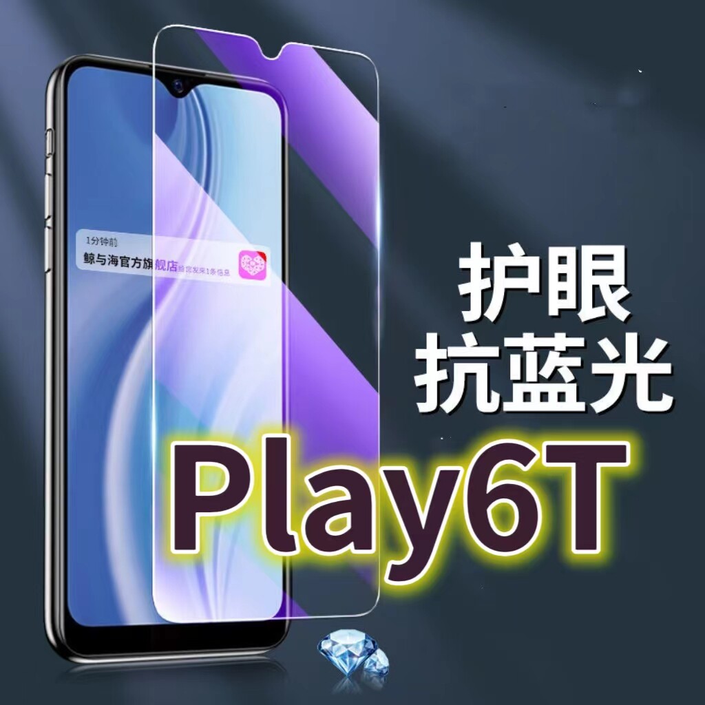 适用华为荣耀Play6T钢化膜5G抗蓝光护眼手机膜CMA-AN40原装保护膜HONOR原厂全屏防摔防爆玻璃膜黑边高清透明