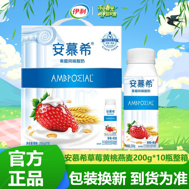 3月伊利安慕希黄桃草莓燕麦希腊风味酸奶200g*10盒 整箱酸奶包邮