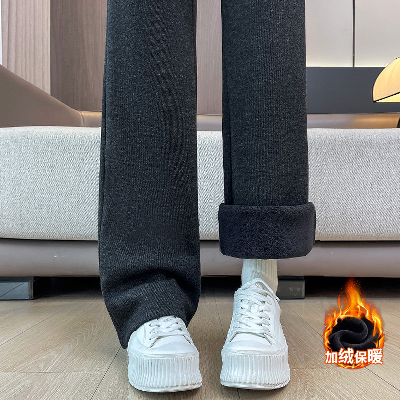 加绒糯米裤子女秋冬2025新款宽松垂感直筒慵懒休闲加厚毛呢阔腿裤