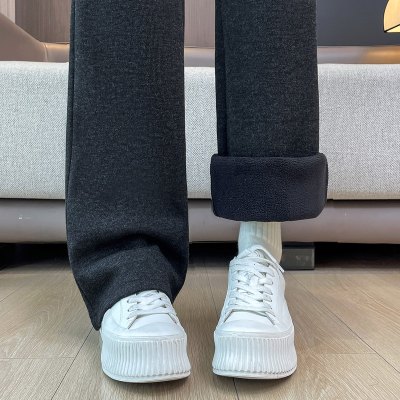 毛呢休闲直筒裤女大码秋冬加绒加厚胖妹妹宽松显瘦磨毛运动阔腿裤