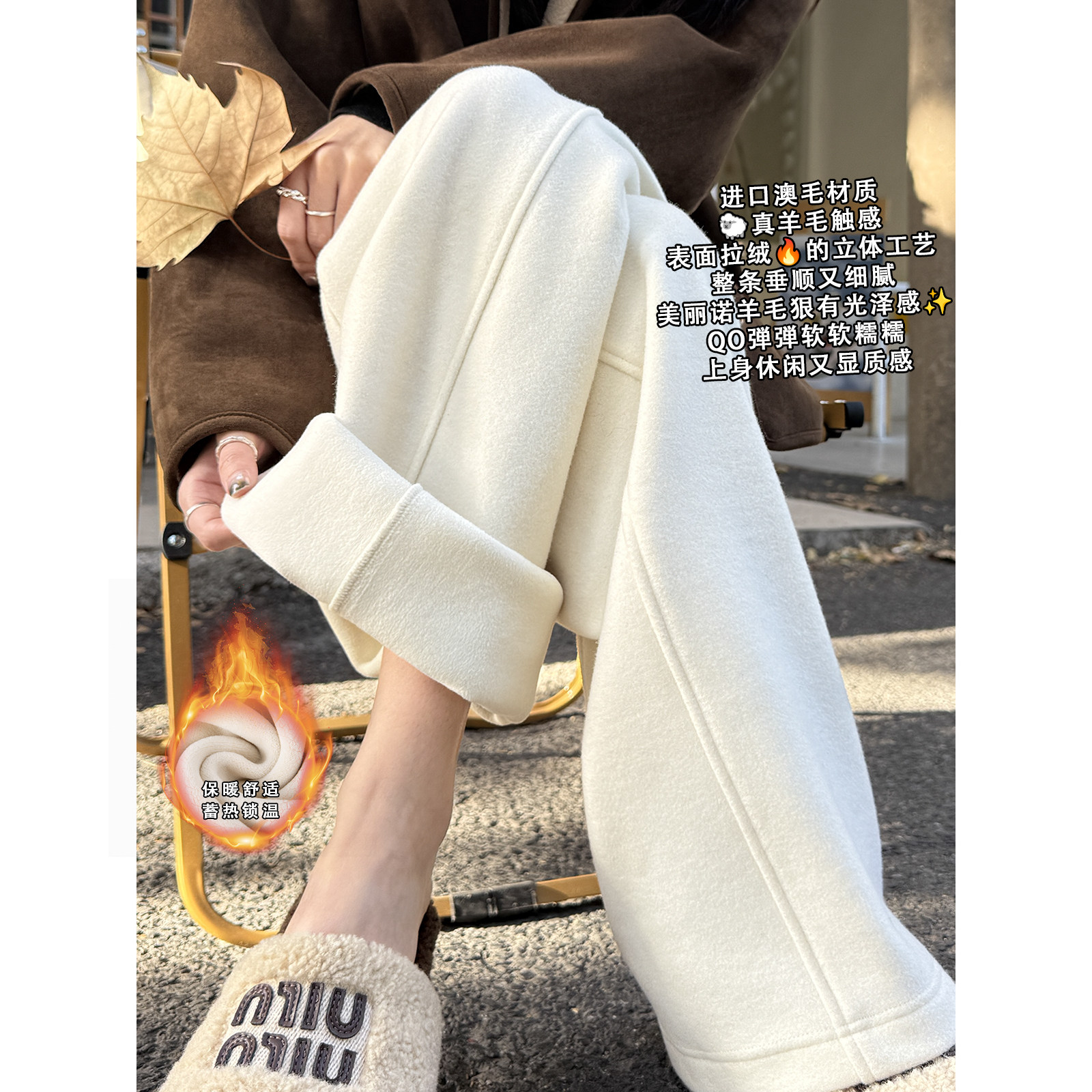 羊绒保暖阔腿休闲裤女秋冬2025新款加厚糯米裤加绒羊毛呢直筒裤子