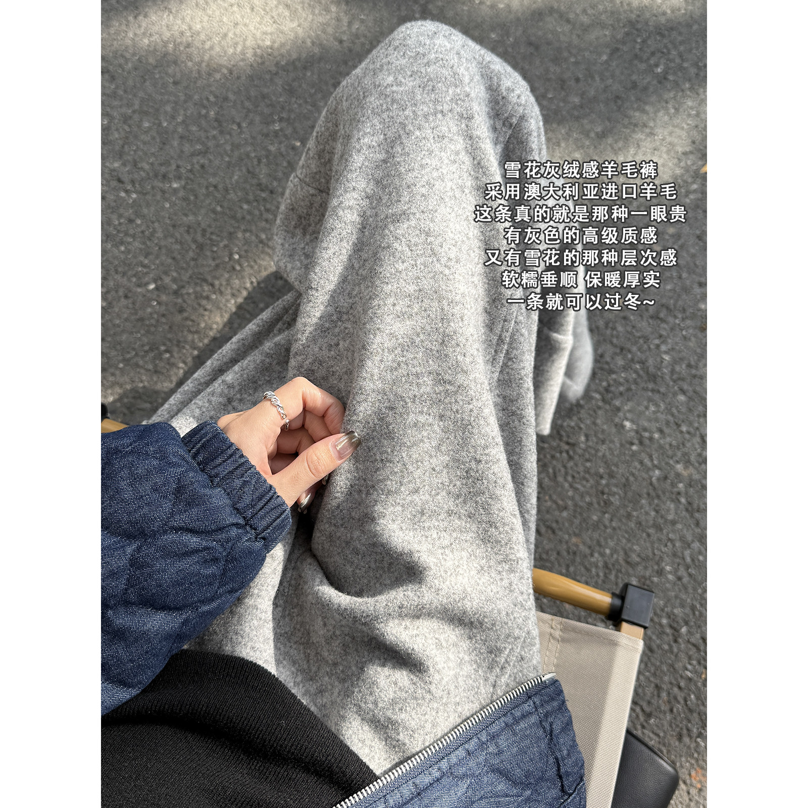 雪花灰澳洲羊毛裤子女2025秋冬加绒加厚休闲卫裤羊毛呢弯刀阔腿裤