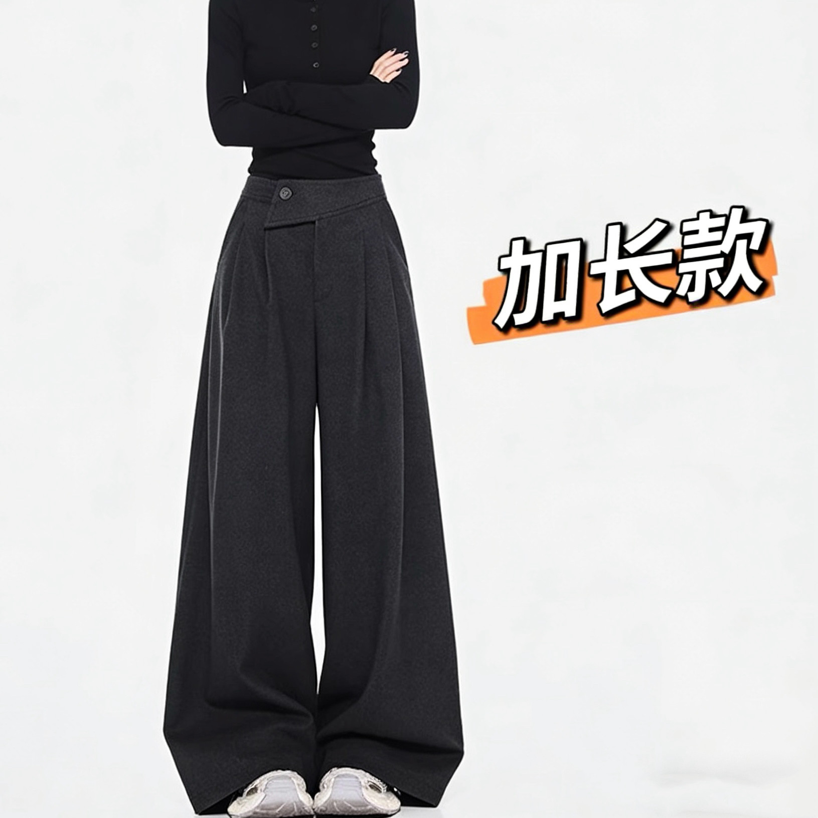 毛呢西装裤子女秋冬2025新款高腰宽松垂感慵懒休闲加绒加厚阔腿裤