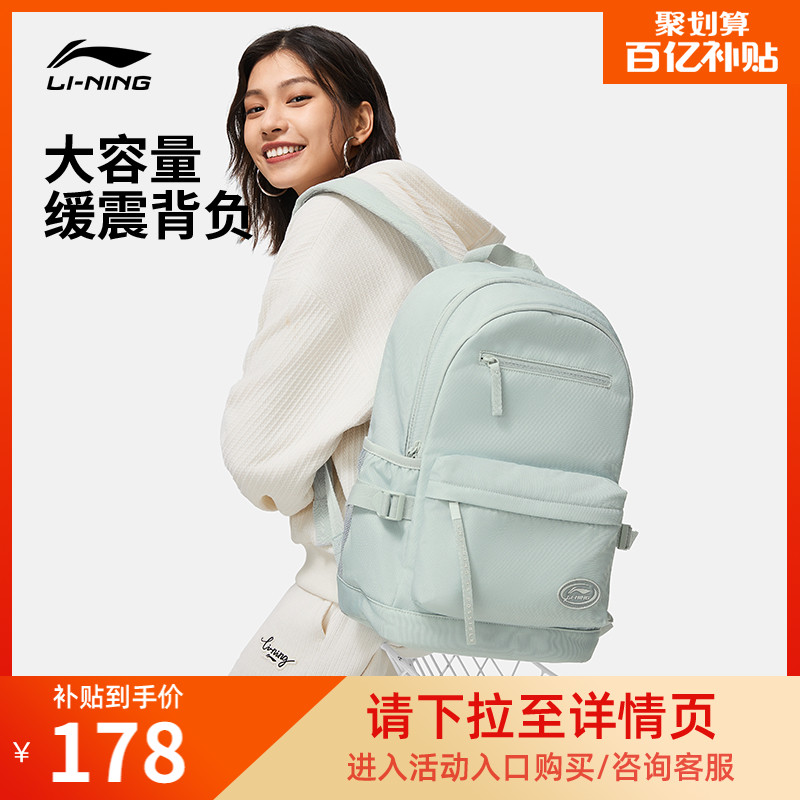 李宁双肩包书包女士旅行大容量男生初中生高中大学生运动户外背包