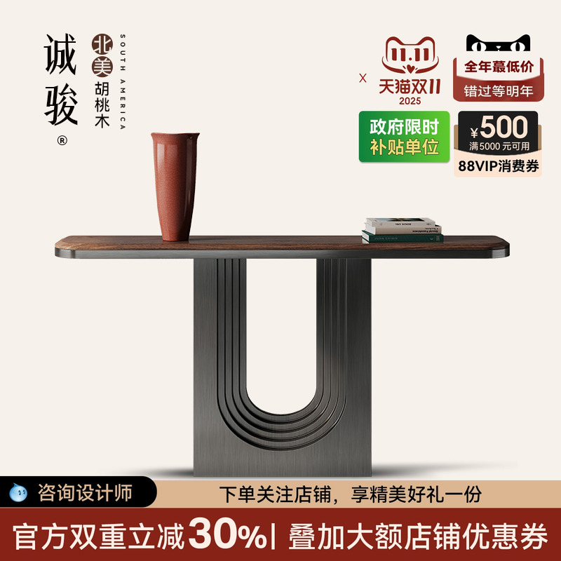 诚骏轻奢玄关台全屋搭配入户门正对艺术别墅家用胡桃木实木玄关桌