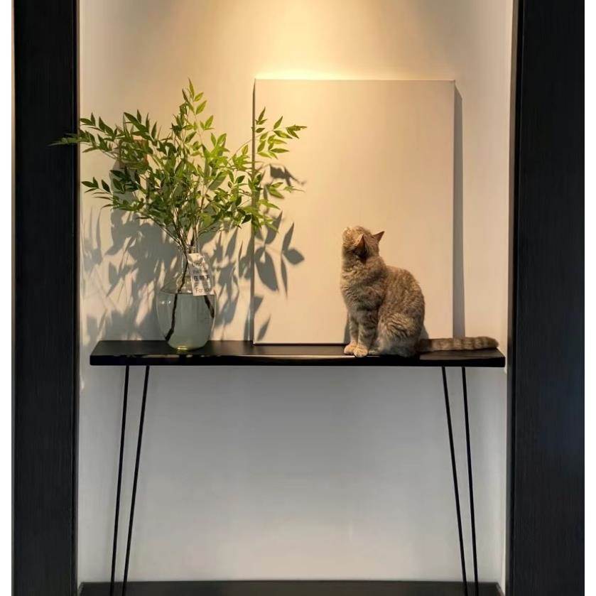 侘寂风实木极简靠墙玄关桌碳化白蜡木窄边轻奢台简约原木装饰桌子
