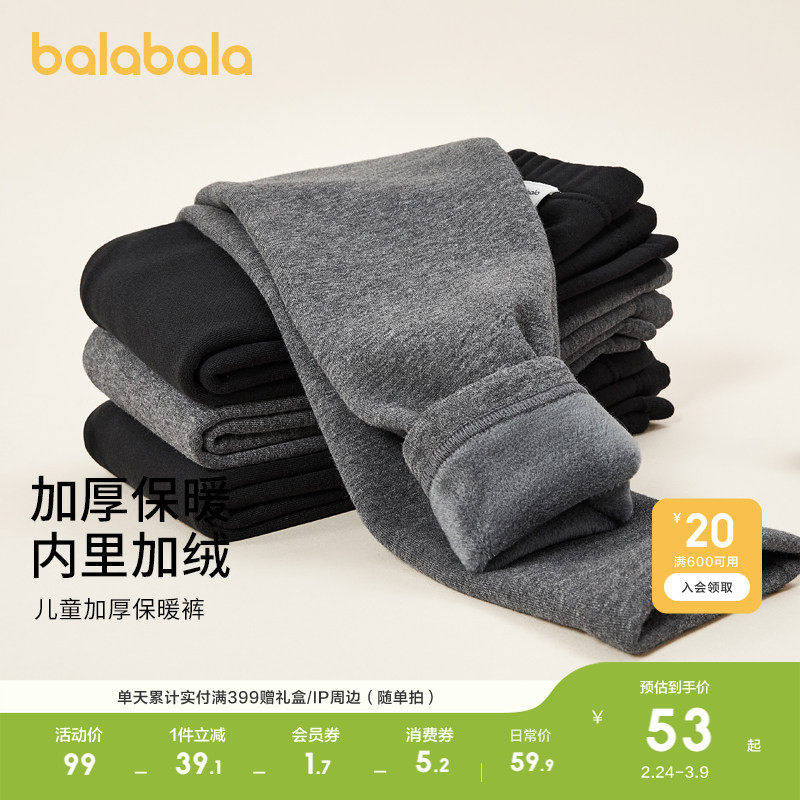 巴拉巴拉儿童保暖裤子冬季一体加绒加厚儿童秋裤男女童打底裤长裤