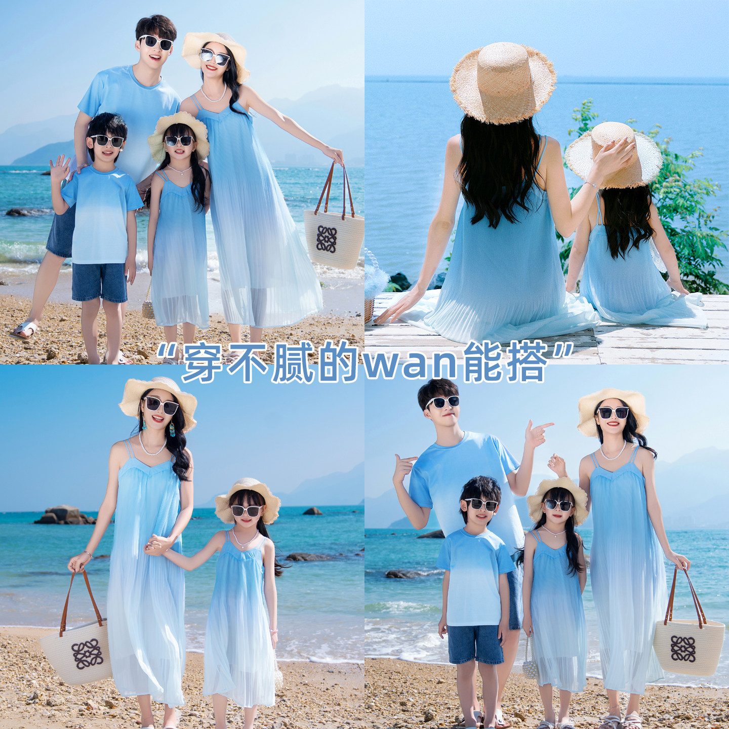 三亚风亲子装夏季海边沙滩装一家三口四口家庭套装母女装连衣裙潮
