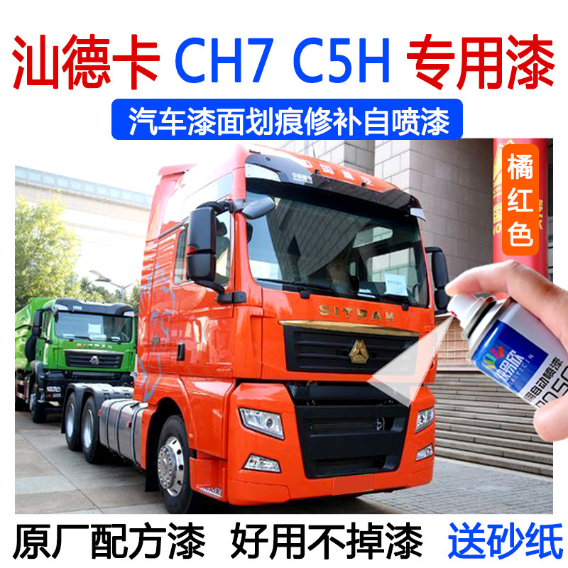 重汽汕德卡C7H橘红色原车漆C5H大货车划痕修补漆笔灰白绿蓝色油漆