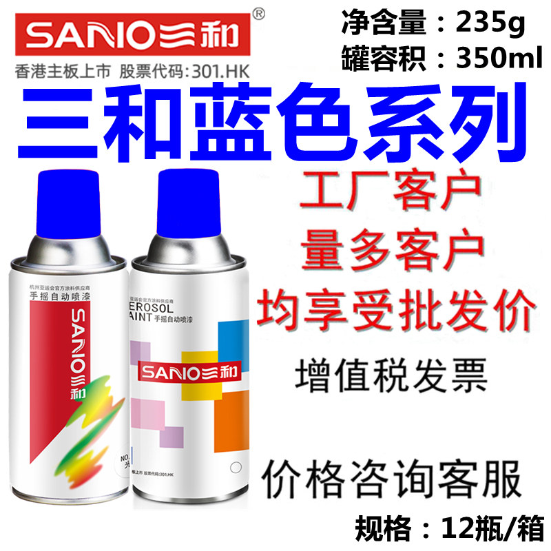 三和蓝色喷漆汽车金属防锈自喷漆中蓝天蓝色浅蓝色油漆深蓝色喷漆