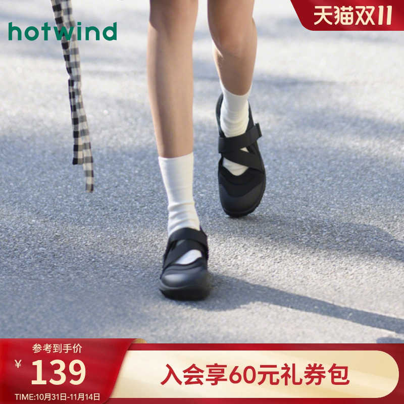 热风运动玛丽珍鞋女款2025年秋新款薄底百搭女鞋芭蕾鞋黑色忍者鞋